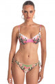 Bikini fascia in lycra goffrata stampa Intreccio Africano con borchie e imbottitura estraibile. Bikini fascia con incrocio centrale e imbottitura estraibile. I lacci intorno al collo donano maggior sostegno e sono arricchiti da accessori glamour. La stampa piazzata Intreccio Africano presenta triangoli e cerchi concentrici che si compongono sapientemente per esaltare la silhouette. Borchie a cupola in oro ramato si aprono a ventaglio rendendo unico e speciale il capo. Vestibilità: La modella è alta 178 cm e indossa la taglia S