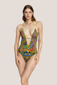 Top e slip v geometrical net Bikini top sbambolato stile Geometrical Net Dettagli top: Top e coppe sagomate ed estraibili Dettagli slip: Slip a V Materiale esterno: 82% poliestere 18% elastan Materiale interno: 88% poliestere 12% elastan La modella indossa una S