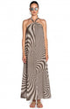 ABITO LUNGO ALLACCIATURA COLLO STAMPA TIGER SUN Abito lungo schiena scoperta con allacciatura al collo in viscosa satin.