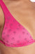 BIKINI TRIANGOLO VELA IMBOTTITO CON MICRO BORCHIETTE PALME Bikini triangolo scorrevole modello vela con imbottitura estraibile e lavorazione palme in micro borchiette.