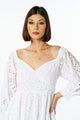 Abito lungo in sangallo senza spalline con balze. Disponibile anche in nero pantera Composizine: 100% Cotone