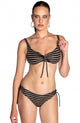 Bikini Triangolo Marina Gold Bikini triangolo Marina Gold in tessuto jersey di viscosa a righe devorata foderato in lycra oro con imbottitura estraibile. Elegante e in perfetto stile nautico il bikini triangolo scorrevole con imbottitura estraibile. L'anella centrale dorata nichel free impreziosice il top. Realizzato in tessuto jersey di viscosa a righe devorata foderato in lycra oro. Dimensione: La taglia MX corrisponde a una S di slip e una L di top Vestibilità: La modella è alta 178 cm e indossa la taglia S