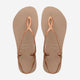 Havaianas Slim Logo Metallic Le infradito Slim Logo Metallic mantengono il sofisticato design slim impreziosito da fascette lucide e logo in metallo che conferiscono un tocco elegante e festaiolo perfette da indossare durante il giorno o la sera al mare o in città. Ci tieni a essere sempre impeccabile anche nei momenti di relax? Allora queste infradito Havaianas sono proprio quello che fa per te! - Prodotte in Brasile. - Vantaggi: Comode solide antiscivolo resistenti al caldo e all'acqua. - Caratteristiche: Fascette con decoro a greche motivo a grana di riso sulla suola superiore e motivo a 'mattone' sulla parte inferiore. Altezza: 15 cm. -Cinturini: 100% PVC -Suola: 100% Gomma -Logo: 100% Zama