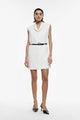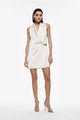 Abito corto doppiopetto con fiocco Un capolavoro di sartoria urbana questo abito corto è perfetto per chi desidera distinguersi con grazia. La chiusura doppiopetto aggiunge un tocco di classe mentre lo scollo a v e il design senza maniche ne accentuano la silhouette. Ideale per una serata in città o un evento speciale dove l'eleganza discreta è la chiave. 96%PL 4%EA