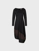 Abito lungo in lurex rigato Abito in garza di lurex rigata con scollo sottoveste gonna ampia e taglio impero con coulisse