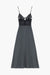 Abito lungo con corpino in pizzo e spalline sottili Abito lungo caratterizzato da un corpino in pizzo con spalline sottili e scollo a v che si contrappone alla gonna a tinta unita dalla linea ampia e pulita. Una proposta sofisticata e versatile pensata per chi desidera reinterpretare il guardaroba urbano con tocchi di carattere e attenzione ai dettagli sartoriali.