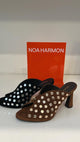 SANDALO C/TACCO CM 7 IN CAMOSCIO E FIBBIA IN TINTA
