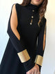 Abito lungo girocollo con schiena scoperta e bracciali oro ai polsi