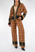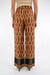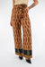 PANTALONE PALAZZO - FANTASIA CIOCCOLATO/CAMMELLO Descrizione Pantalone palazzo con tasche a filo cintura con nappine mezzo elastico in vita colore Cioccolato/Cammello. Composizione: 100% Viscosa La modella è alta 1.68 e indossa la taglia S/M