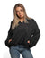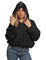 Felpa Jijil donna nera in 88% cotone e 12% poliestere modello JPI25FP076: Cappuccio in tessuto satinato Maniche lunghe con dettaglio arricciato Scritta logata ricamata frontale Inserto logato laterale Tasca frontale Fondo a sbuffo elasticizzato